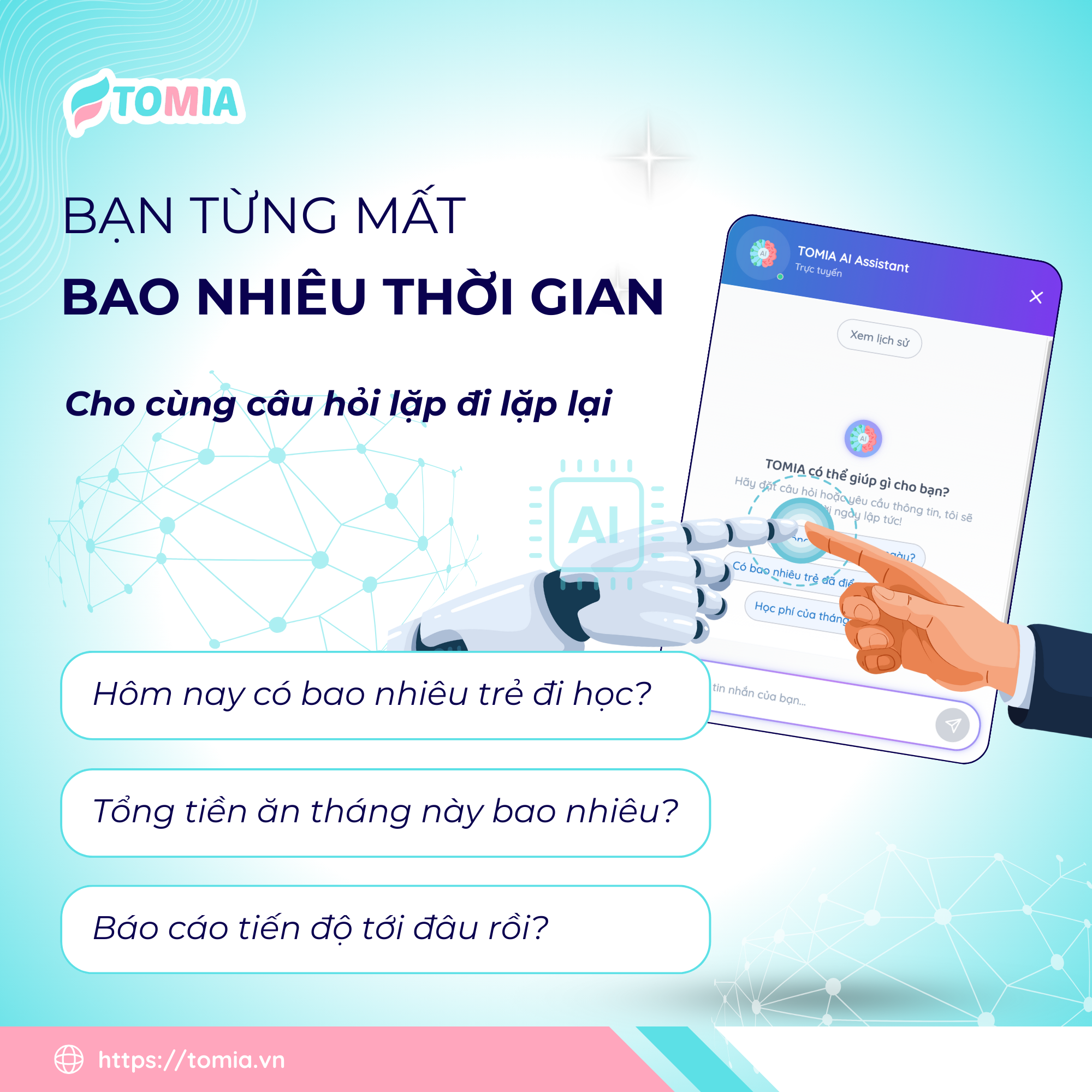 Bạn từng mất bao nhiêu thời gian cho cùng một câu hỏi lặp đi lặp lại? “Hôm nay có bao nhiêu trẻ đi học?” “Học phí tháng này bao nhiêu?” “Báo cáo tiến độ tới đâu rồi?” Nếu mỗi ngày phải dành hàng giờ chỉ để trả lời những điều đó, thử nghĩ xem trường