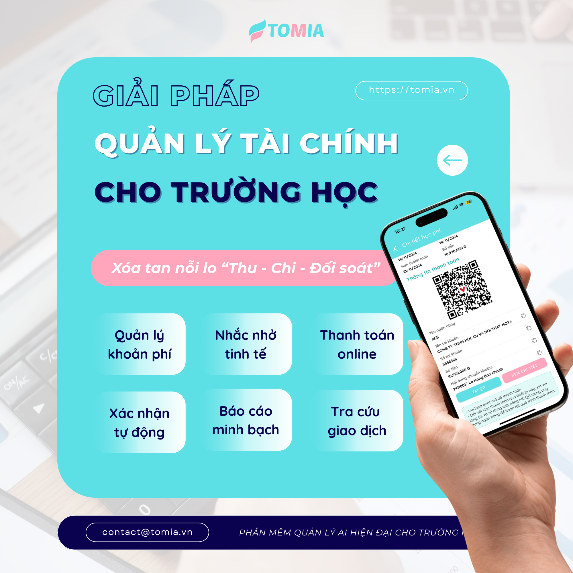 📌 Nhà trường đang đau đầu với: – Quá nhiều khoản phí (học phí, bán trú, ngoại khóa…) khó quản lý? – Phụ huynh nộp muộn, nhắc nhở mãi? – Kế toán mất hàng giờ xác nhận thanh toán, làm báo cáo thủ công? 👉 Đã đến lúc để TOMIA thay đổi cuộc chơi với
