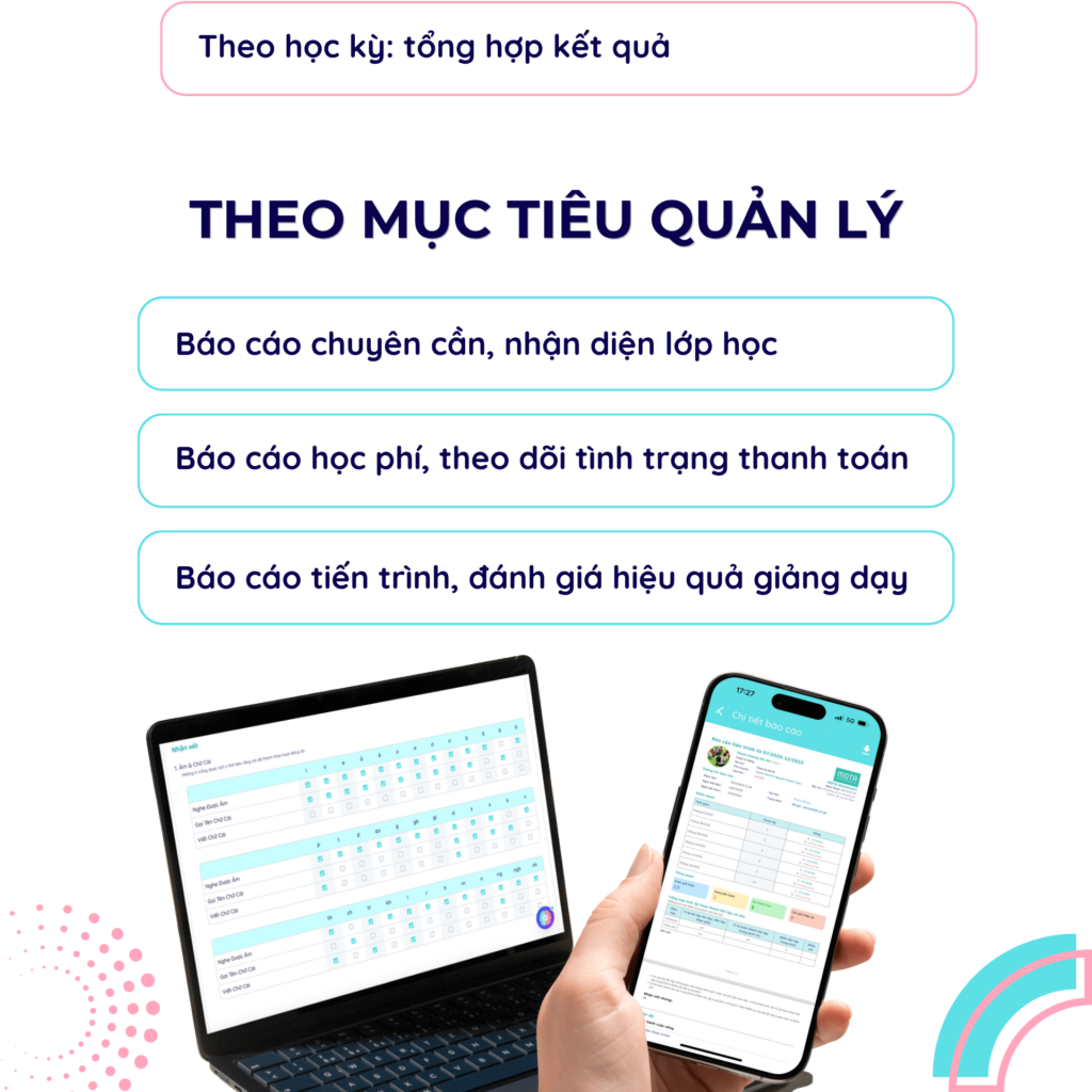 Không phải vì báo cáo chưa có, mà vì cách sử dụng báo cáo chưa thực sự phục vụ cho việc vận hành hằng ngày. Thay vì chỉ xem tổng hợp, nhà trường có thể chủ động “đọc” dữ liệu theo nhiều góc khác nhau:
