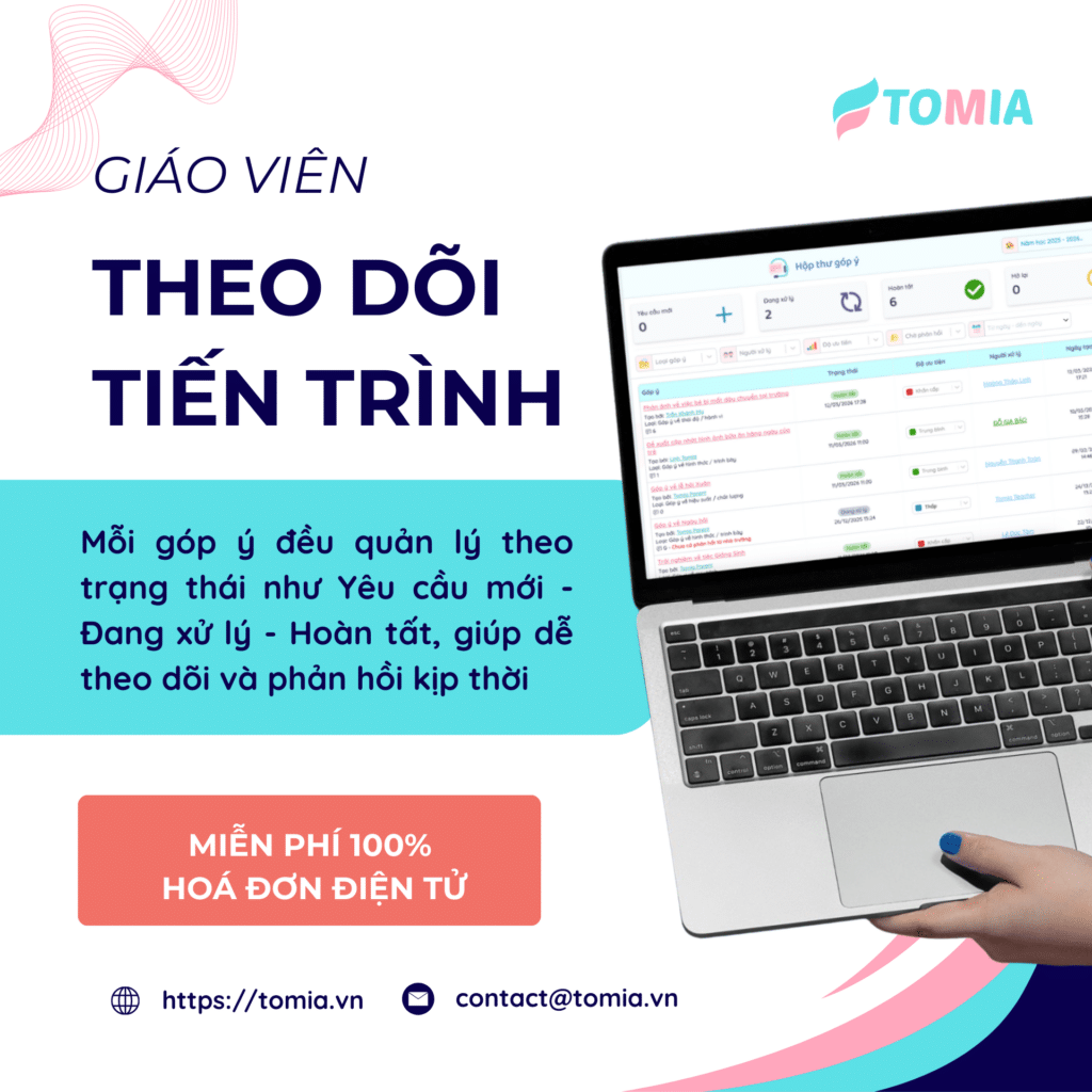 TOMIA - Tiên phong AI vì giáo dục nhân văn - Giải pháp hàng đầu trong công tác trao đổi thông tin đa chiều giữa nhà trường, giáo viên và phụ huynh; tiết kiệm thời gian và công sức nhờ vào sổ liên lạc điện tử, giáo án chi tiết và cập nhật thông tin nhanh chóng. Liên hệ ngay với TOMIA để trải nghiệm nhé!