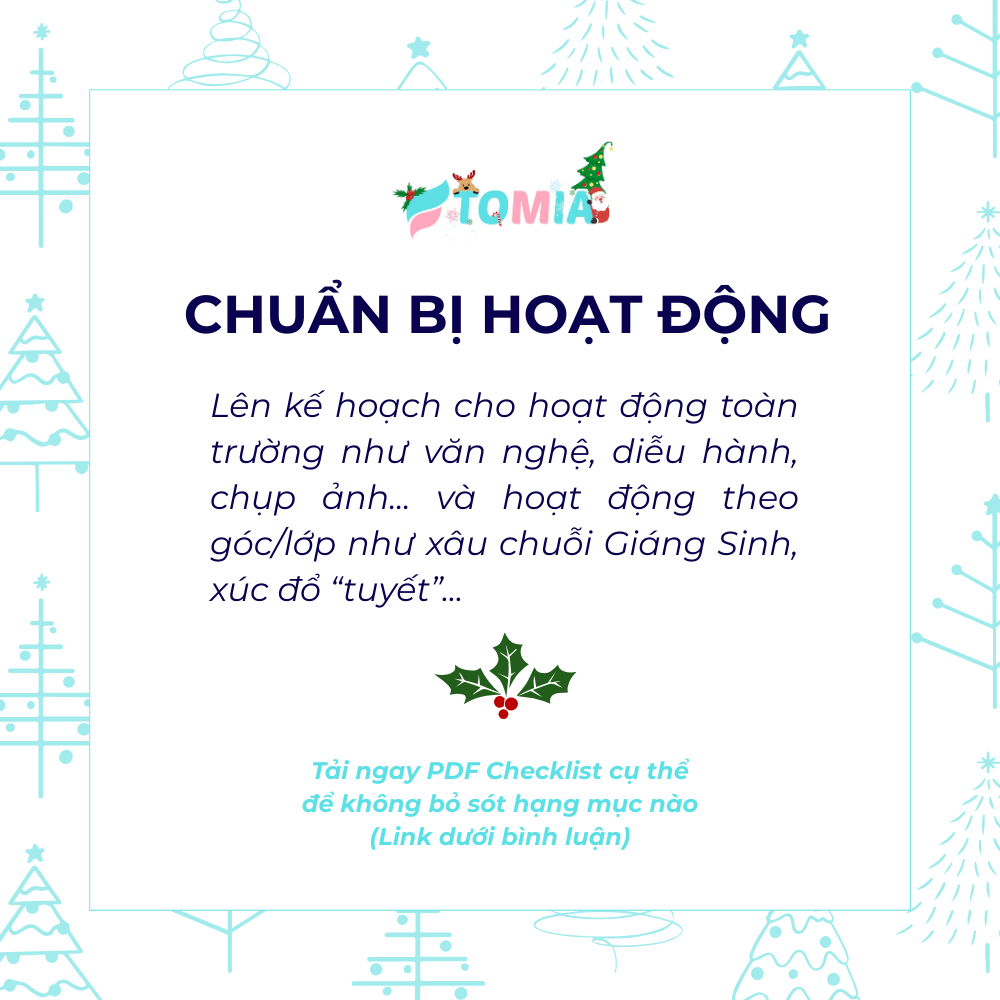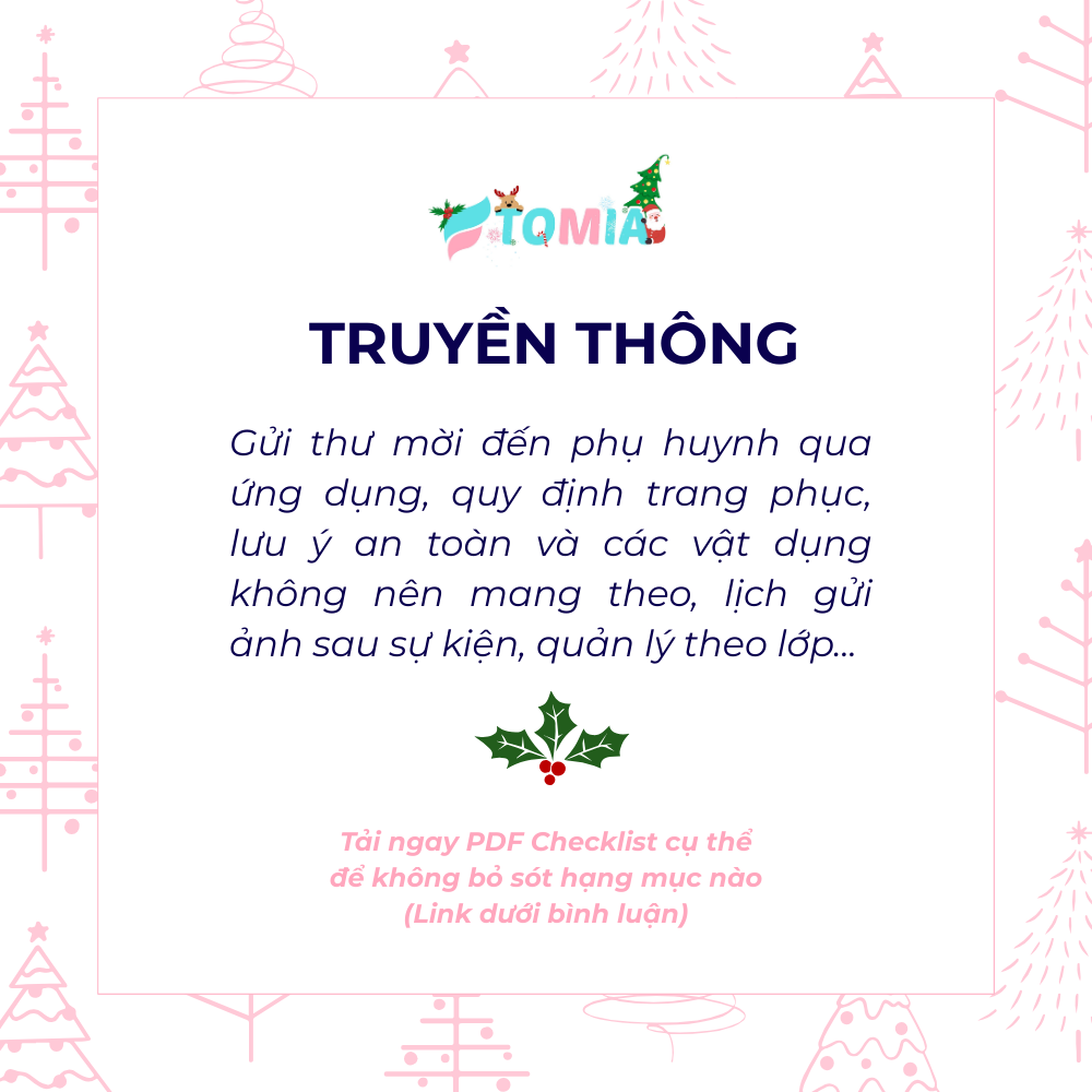 🎅 Hy vọng checklist nhỏ này giúp nhà trường nhẹ gánh chuẩn bị và thêm cảm hứng để tạo nên một mùa Noel thật đáng nhớ cho trẻ.