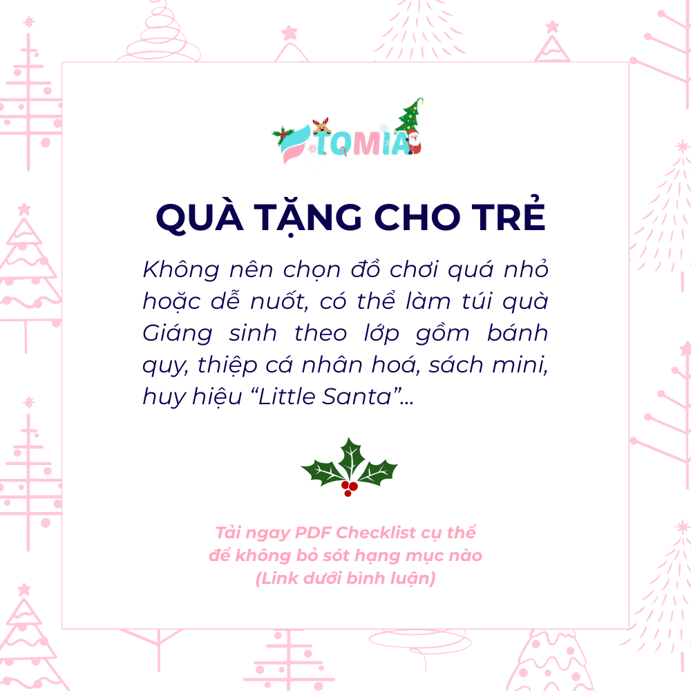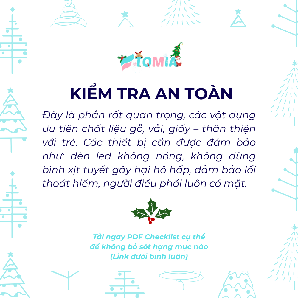 TOMIA gửi tặng Quý Nhà trường một Checklist tổ chức Giáng Sinh để thầy cô đỡ áp lực chuẩn bị, và vẫn giữ được một mùa lễ thật tinh tế – an toàn – tràn niềm vui cho trẻ. Mời Quý Nhà trường tải file tại đây để không bỏ sót hạng mục nào nhé!