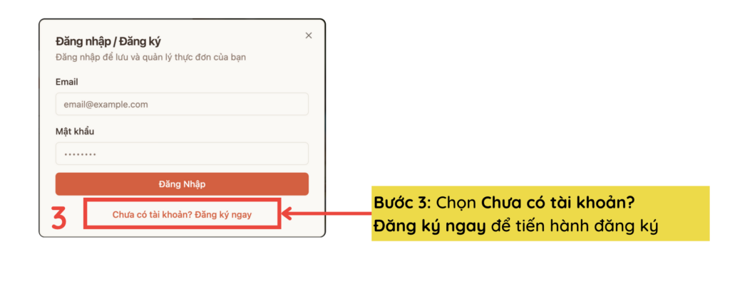 Bước 3: Chọn Chưa có tài khoản? Đăng ký ngay để tiến hành đăng ký