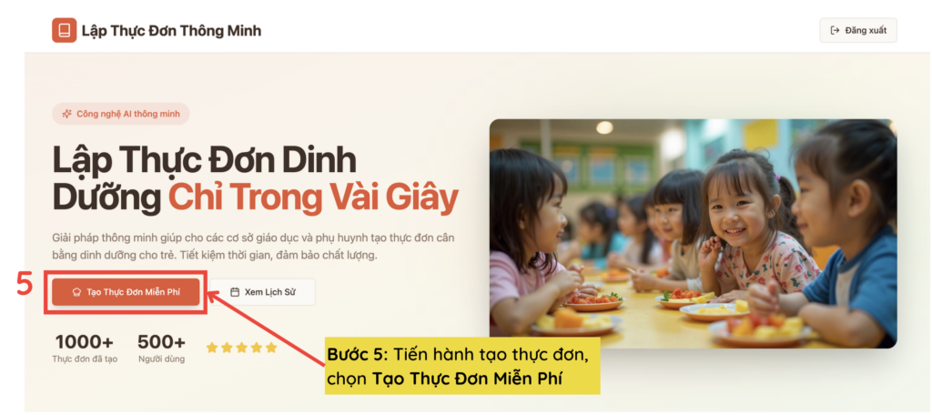 Để thiết lập  thực đơn bằng AI, giáo viên có thể thực hiện theo các bước sau đây: