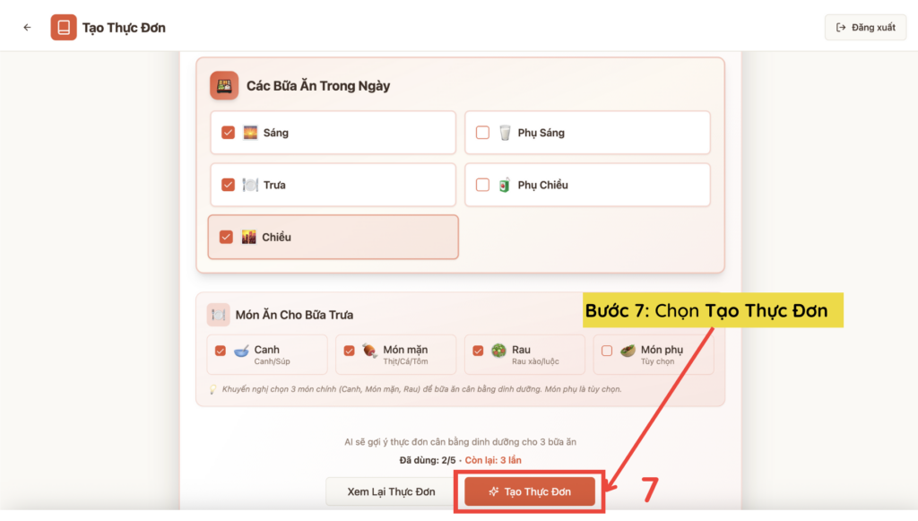 Bước 7: Chọn Tạo Thực Đơn