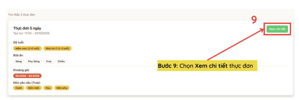 Bước 9: Chọn Xem chi tiết thực đơn