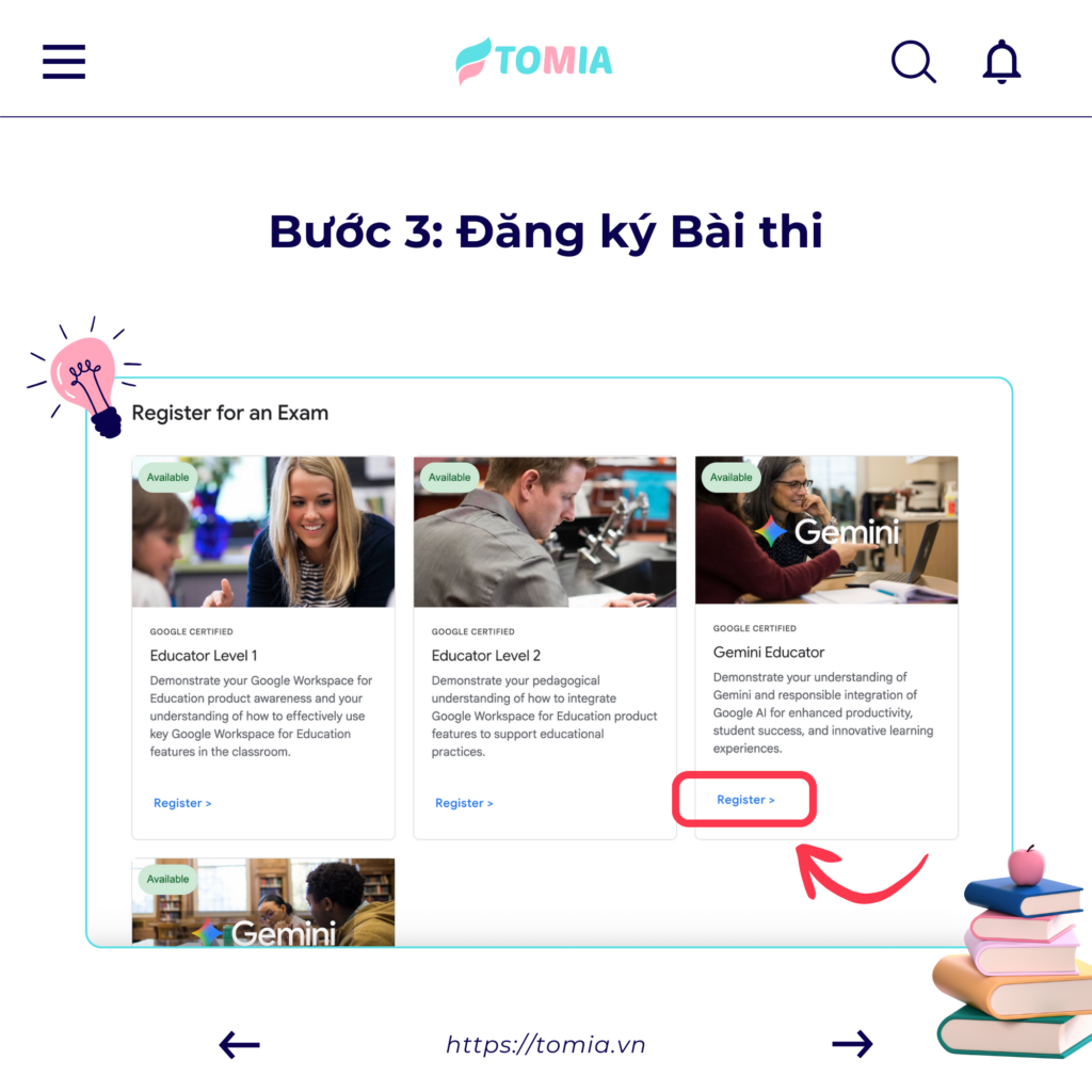 - Bước 3: Đăng ký Bài thi Tại mục Gemini Student Certification, bấm Register (Đăng ký).