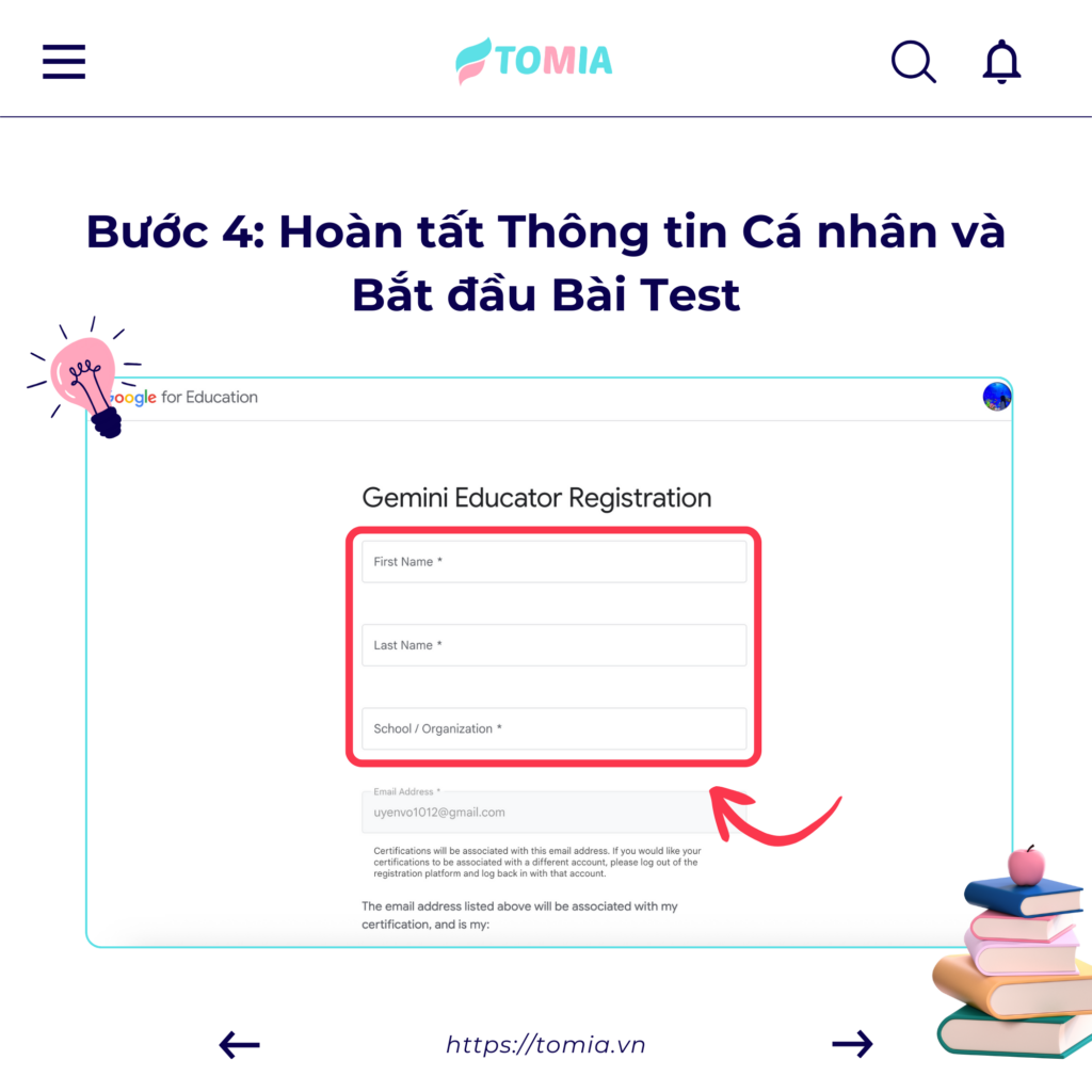 - Bước 4: Hoàn tất Thông tin Cá nhân và Bắt đầu Bài Test Điền đầy đủ và chính xác các thông tin cá nhân (tên, email, đơn vị trường học) theo hướng dẫn trên màn hình để hoàn tất thủ tục đăng ký. Sau đó, bạn có thể vào làm bài test ngay.