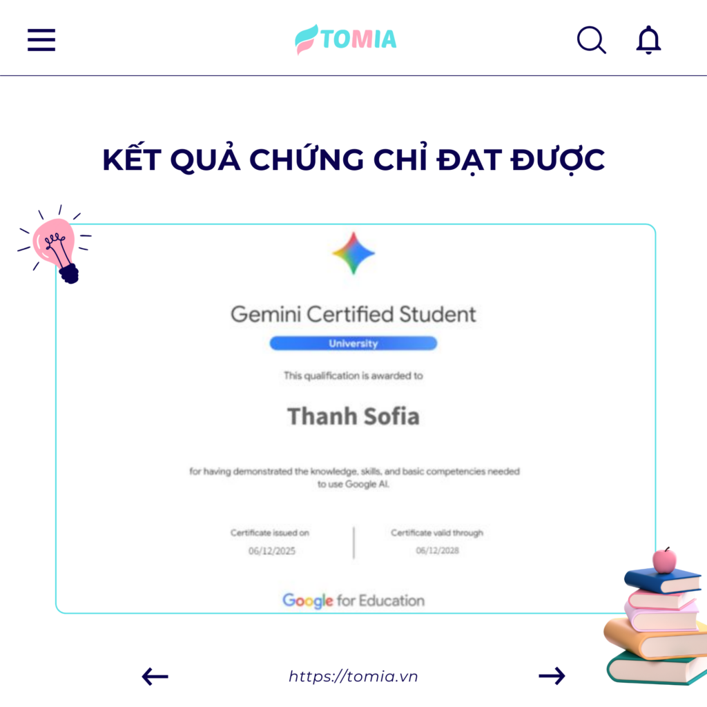 Bài viết này, TOMIA sẽ đồng hành cùng bạn khám phá giá trị cốt lõi của chứng chỉ này và hướng dẫn chi tiết các bước để sở hữu nó hoàn toàn miễn phí. Đừng bỏ lỡ cơ hội khẳng định vị thế tiên phong trong ứng dụng AI vào học tập!