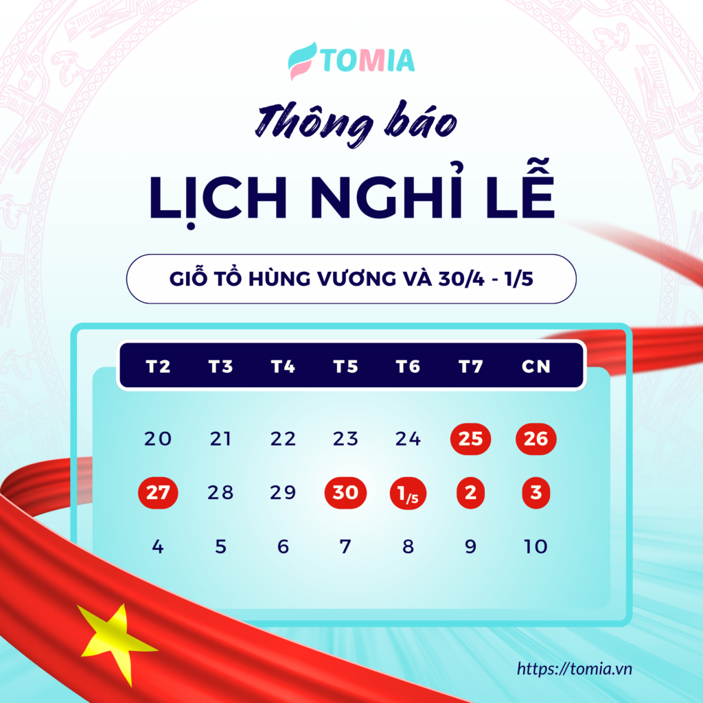 Nhằm giúp Quý nhà trường, Quý thầy cô và Quý phụ huynh chủ động trong việc sắp xếp kế hoạch giảng dạy, học tập và vận hành, Hệ thống quản lý trường học TOMIA xin trân trọng thông báo lịch nghỉ lễ Giỗ Tổ Hùng Vương và dịp lễ 30/4 – 1/5. Đây là những ngày lễ lớn mang ý nghĩa lịch sử và văn hóa sâu sắc, đồng thời cũng là dịp để các đơn vị giáo dục nghỉ ngơi, tái tạo năng lượng và chuẩn bị cho giai đoạn học tập tiếp theo.