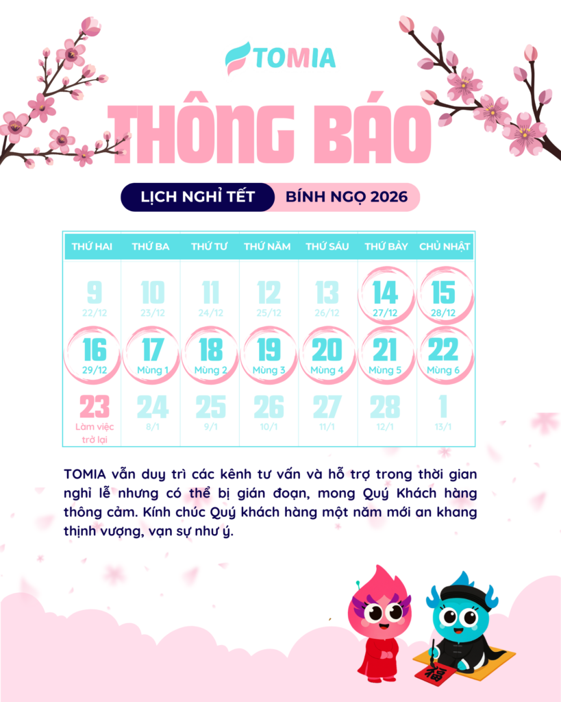 Hệ thống Quản lý Trường học TOMIA xin trân trọng thông báo lịch nghỉ Tết Nguyên Đán như sau: