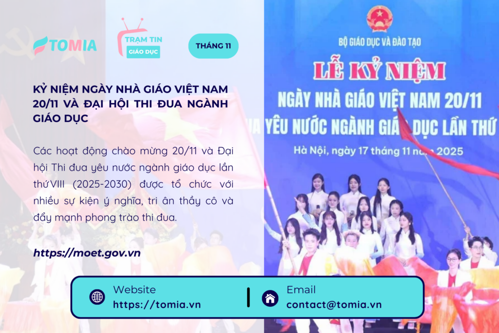 Tháng 11/2025 khép lại với nhiều chuyển động quan trọng trong giáo dục, từ các chính sách mới về sách giáo khoa, lương giáo viên đến những hoạt động ý nghĩa nhân dịp 20/11. Đây không chỉ là tháng tri ân nhà giáo mà còn là thời điểm thúc đẩy mạnh mẽ đổi mới tư duy và nâng cao chất lượng giáo dục toàn diện.