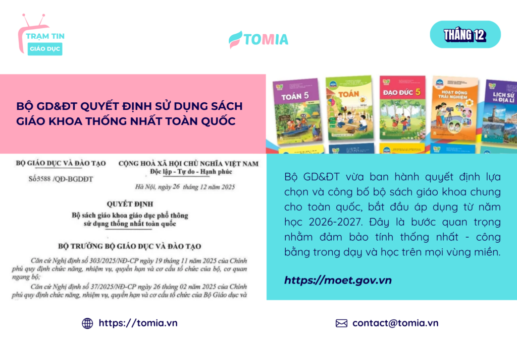 Tháng 12/2025 khép lại với nhiều điểm nhấn đáng chú ý trong lĩnh vực giáo dục: từ đề xuất chính sách lương mới cho giáo viên, phương án một bộ sách giáo khoa, đến các hoạt động tổng kết năm và định hướng cho giai đoạn sắp tới.