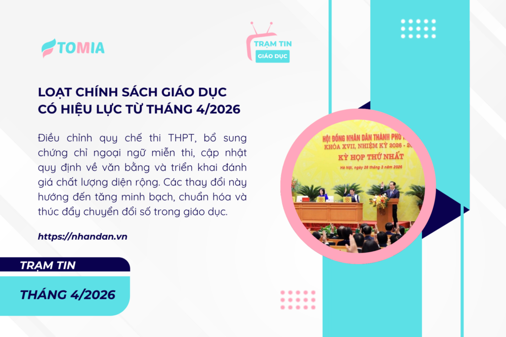 Bắt đầu từ tháng 4/2026, hàng loạt chính sách quan trọng được triển khai như điều chỉnh quy chế thi tốt nghiệp THPT, mở rộng danh mục chứng chỉ ngoại ngữ được miễn thi, đồng thời cập nhật quy định về văn bằng – chứng chỉ. Bên cạnh đó, việc đánh giá chất lượng giáo dục trên diện rộng cũng được đẩy mạnh.
