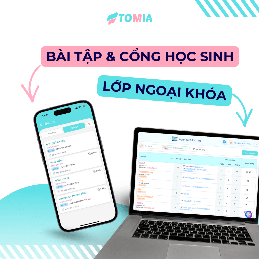👉 Khám phá ngay nhóm tính năng học tập của TOMIA để việc dạy và học trở nên liền mạch, rõ ràng và nhẹ nhàng hơn cho cả giáo viên, nhà trường và phụ huynh.