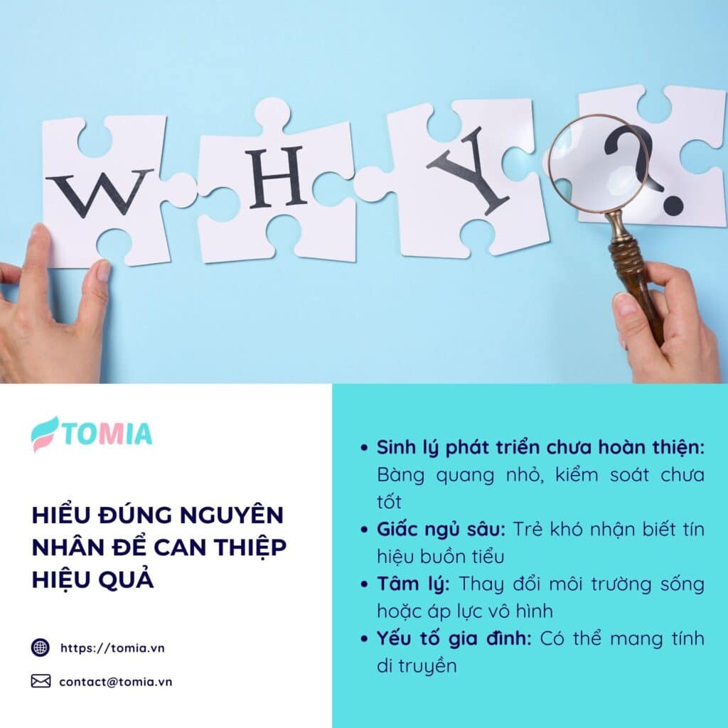 Tình trạng tè dầm thường xuất phát từ nhiều yếu tố khác nhau, bao gồm: