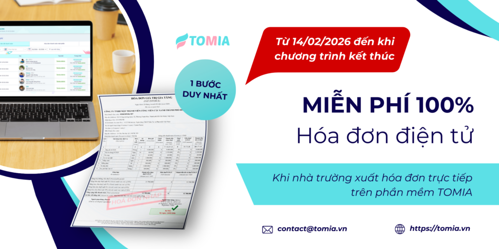 Hiểu rõ áp lực đó, TOMIA mang đến ưu đãi MIỄN PHÍ 100% hóa đơn điện tử khi nhà trường xuất hóa đơn trực tiếp trên phần mềm TOMIA.