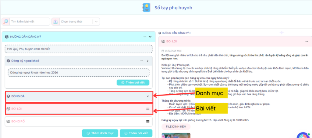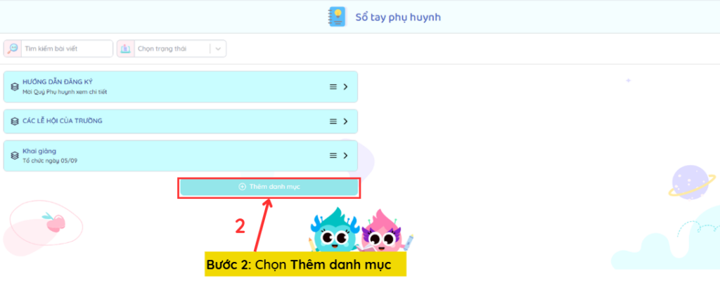 1. TẠO DANH MỤC CHO SỔ TAY PHỤ HUYNH