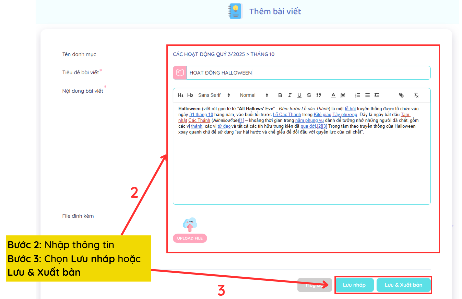 - Lưu và Xuất bản: Lưu bài viết và xuất bản ngay, có thể chỉnh sửa và xuất bản lại nếu cần