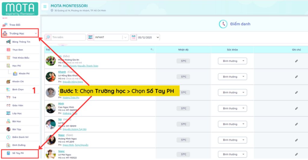 Bước 1: Chọn Trường học > Chọn Sổ Tay PH