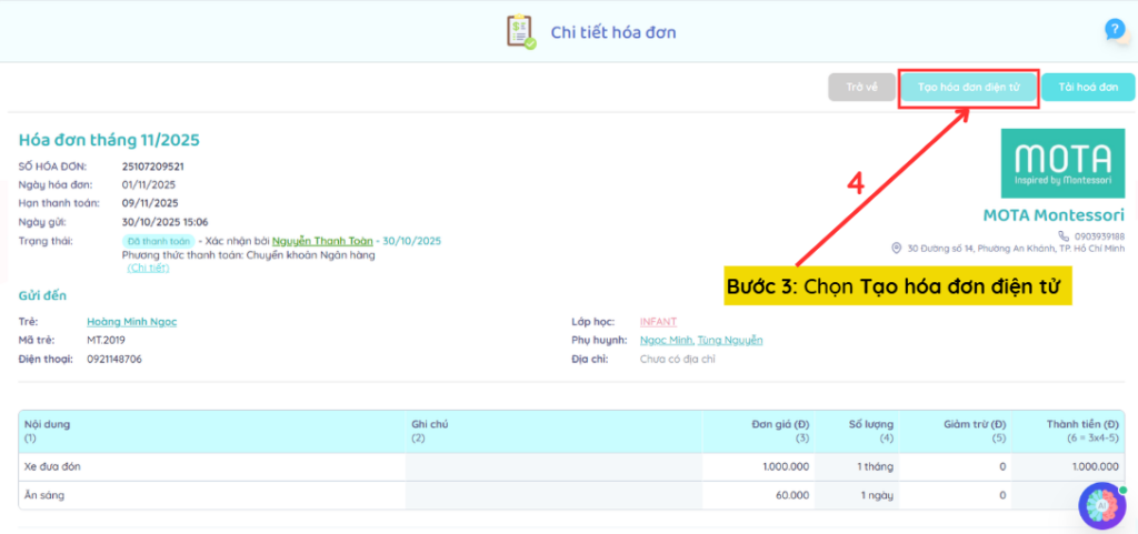 Bước 4: Chọn Tạo hóa đơn điện tử
