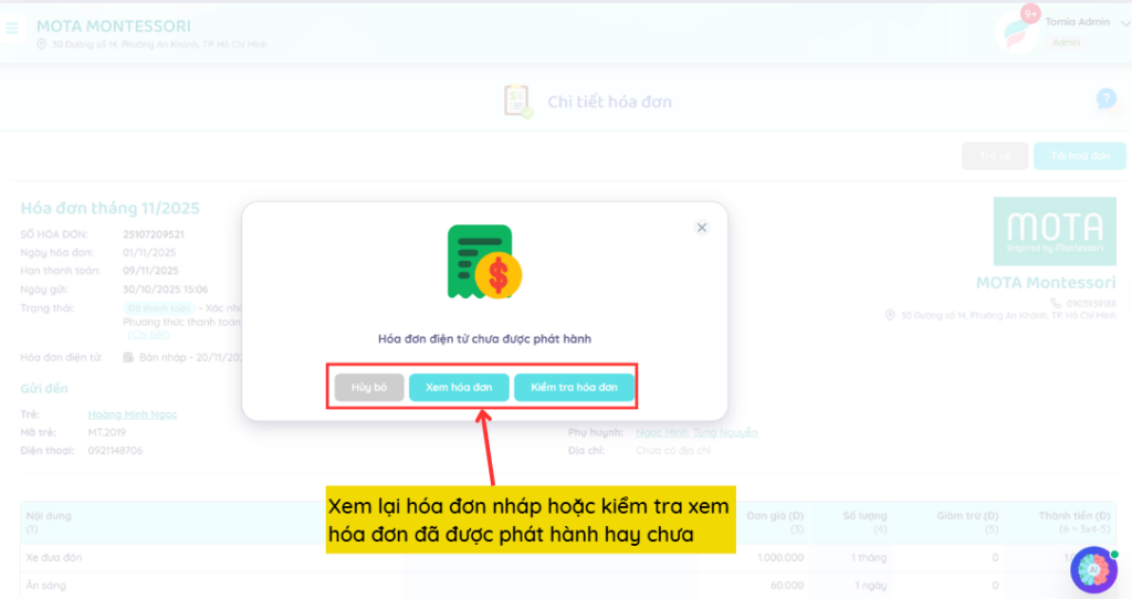 [Web – Admin Portal] – Hướng dẫn xuất hóa đơn điện tử và kiểm tra trạng thái hóa đơn