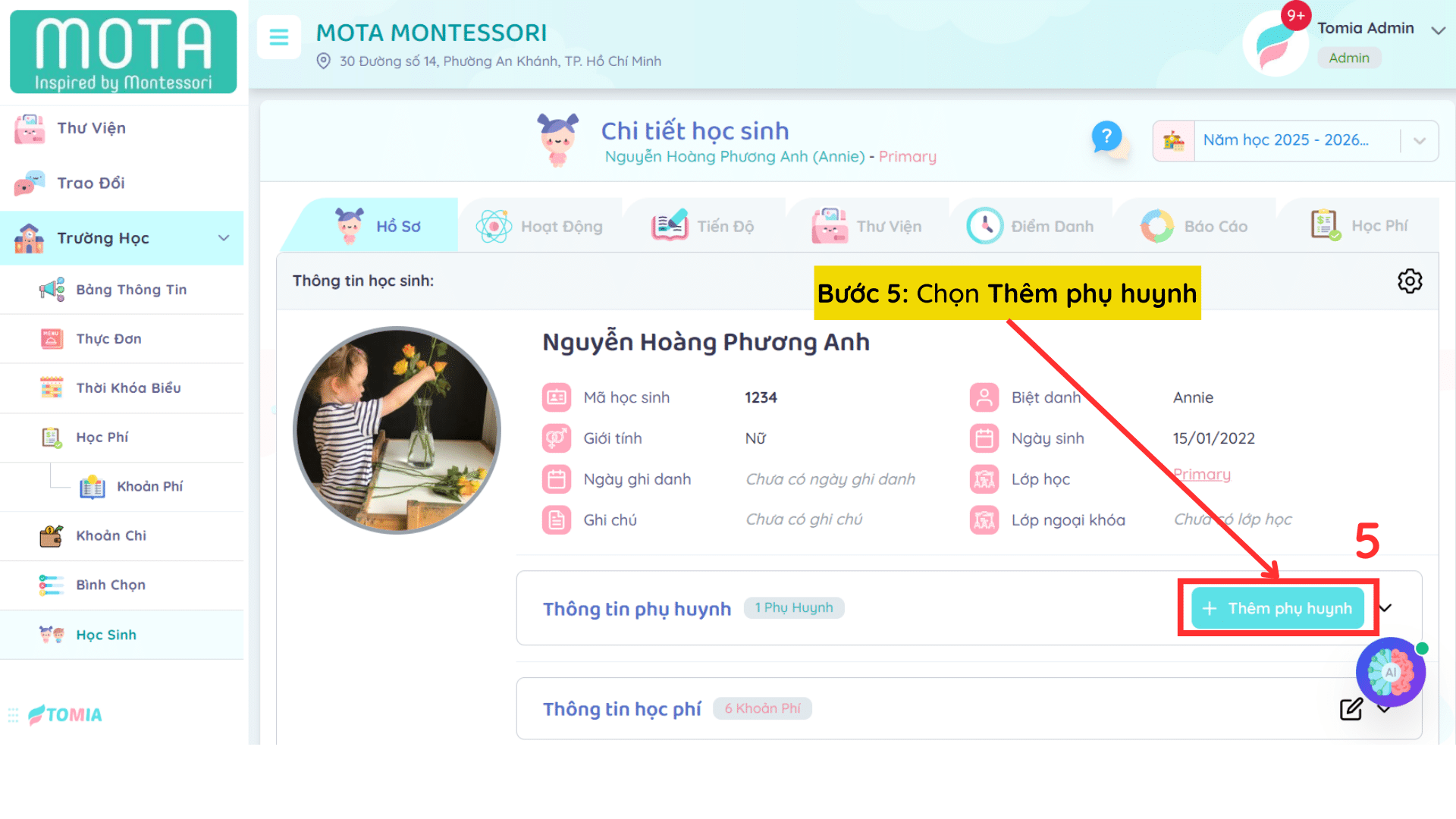[Web – Admin Portal] – Hướng dẫn cách THÊM và BỔ SUNG Thông Tin Phụ Huynh của trẻ
