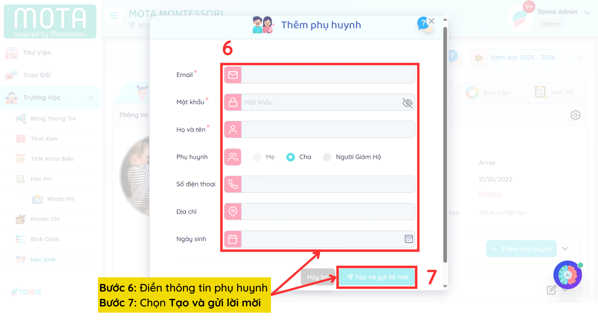Bước 6: Điền thông tin phụ huynh