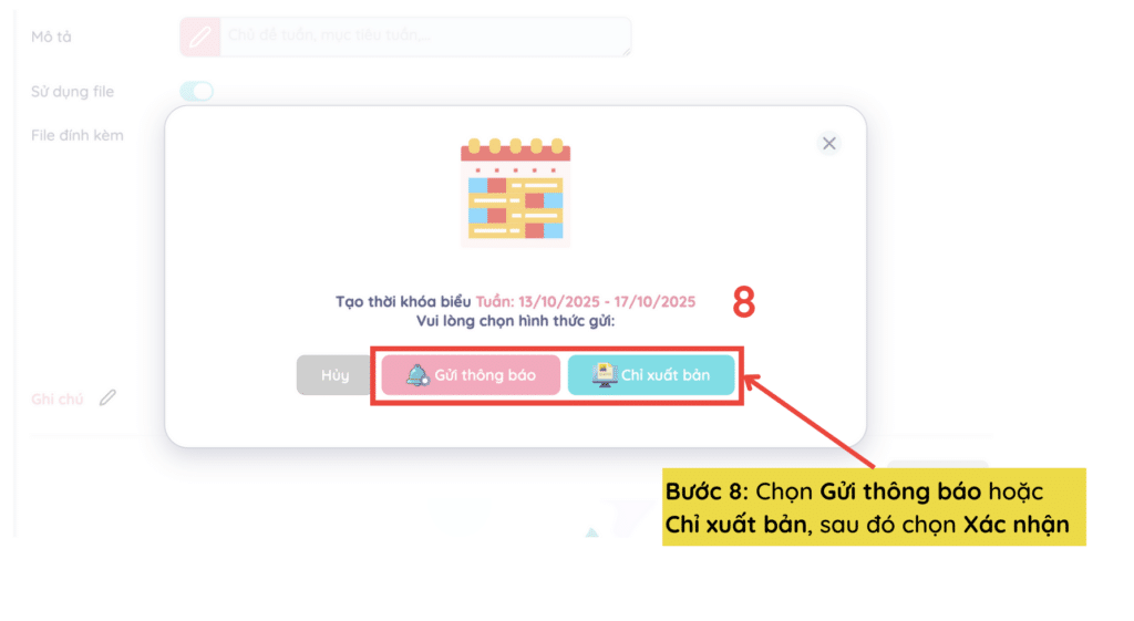 Bước 8: Chọn Gửi thông báo hoặc Chỉ xuất bản, sau đó chọn Xác nhận