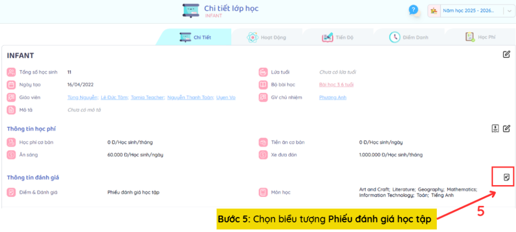 Bước 5: Chọn biểu tượng Phiếu đánh giá học tập