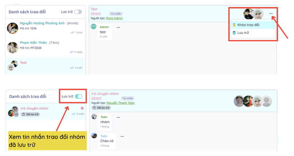 Xem tin nhắn trao đổi nhóm đã lưu trữ