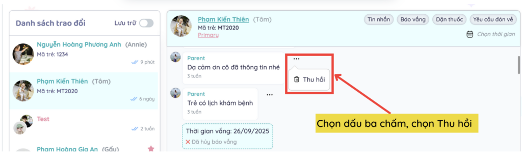 Lưu ý: Tin nhắn thu hồi bao gồm cả hình ảnh liên quan