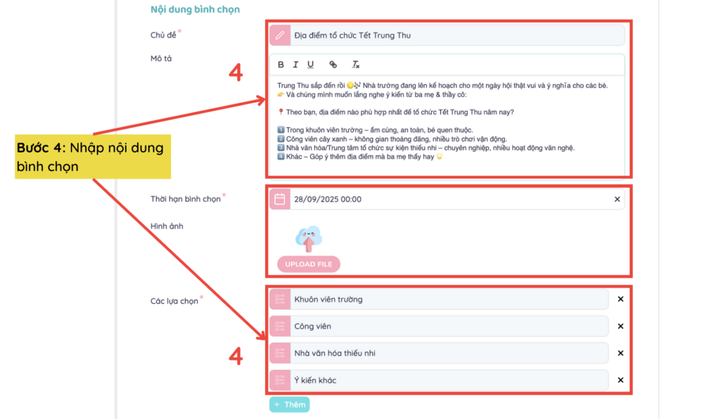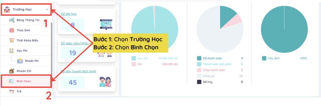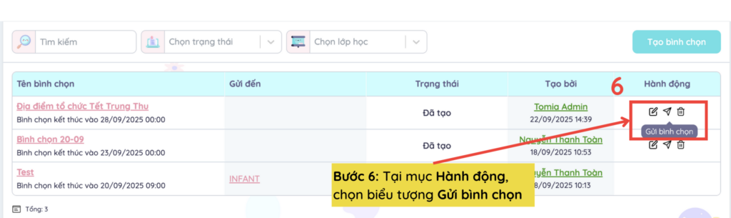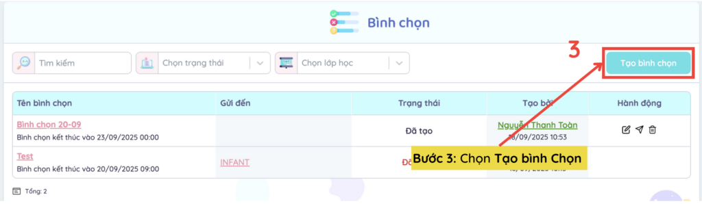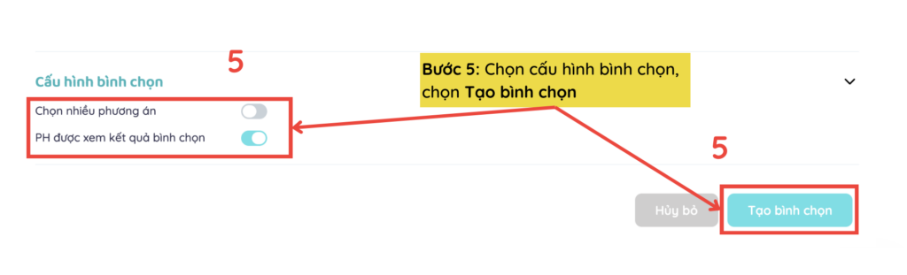 Để tạo và gửi bình chọn, Admin và giáo viên có thể thực hiện những thao tác sau đây: